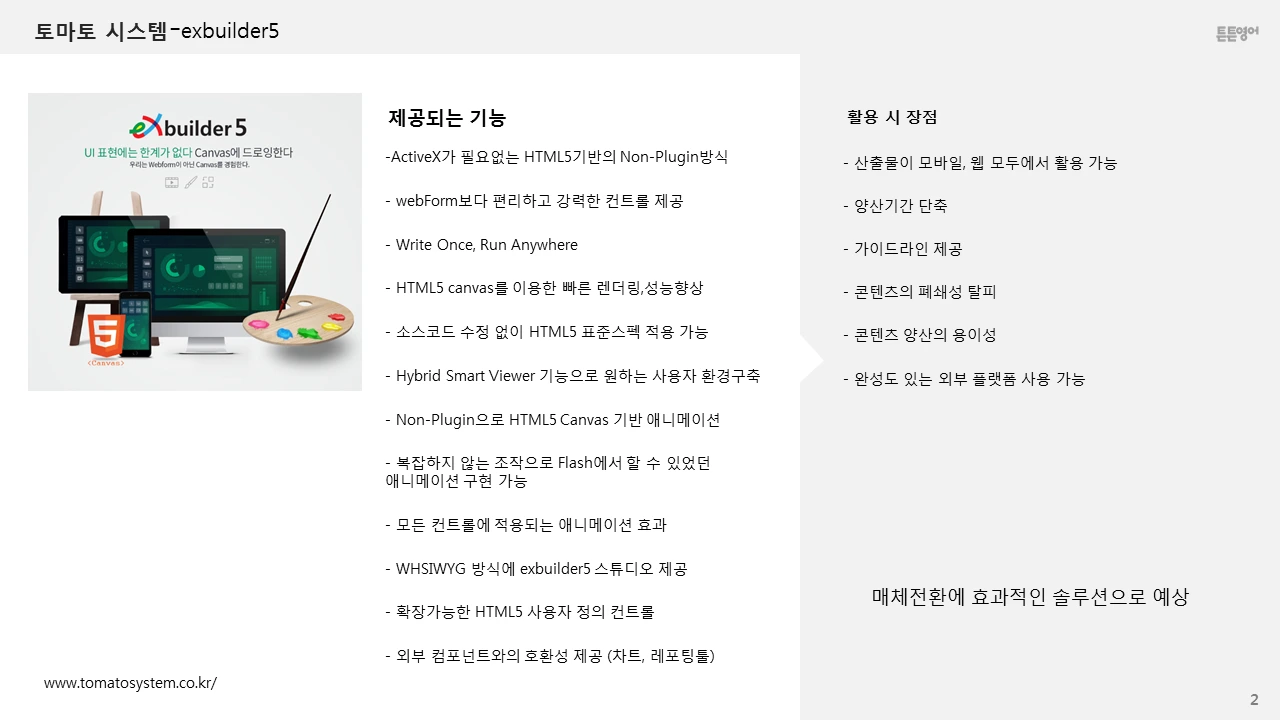 빠른 시일 내에 완성도 있게 양산하기 위해 html5 기반의 UI툴과 외주업체에 대해 리서치를 했다.