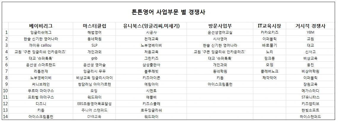 운영하는 사업형태에 따라 경쟁사를 분류했는데,