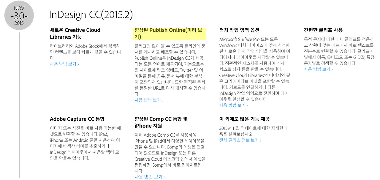 인디자인을 검색해보니 이미 2015년도부터 indesign 자체적으로 Publish online 즉, ebook을 제작하는 툴로써 기능을 갖추고 있었다. 그래서 우리는 ebook저작툴로 indesign cc가 적합하다는 결론을 내렸다. 어도비에서 제공하는 기능으로 시연된 참고 문서이다.