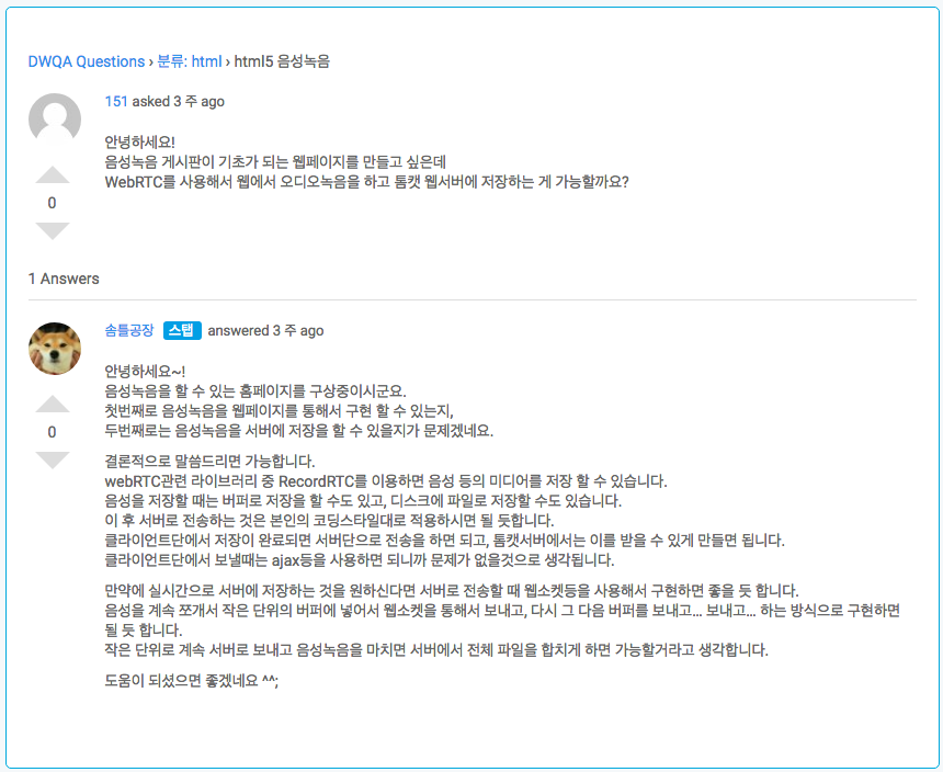웹사이트에서 녹음 후 서버에 보내는 것이 기술적으로 가능하다는 것을 확인했기에 (1) 안 보다는 (2)으로 방향성을 제시하기로 했다. 그렇다면 우리가 필요한 필수인력은 html5 라이브러리에 능한 마크업 기술자이다.