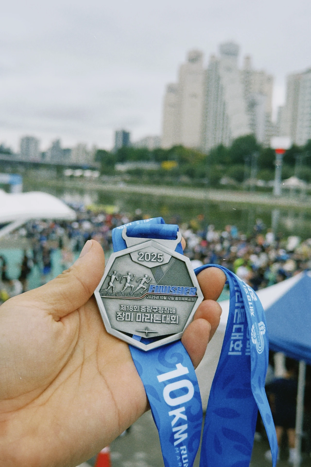 무리에 속해 한 방향으로 뛰며 한 인간으로 살아간다는 느낌과 함께 같은 방향으로 뛰는 것이 세속적이란 생각을 했다. 나보다 빠르게 뛰는 사람을 보며 내가 절제하며 뛰고 있다고 느꼈고, 나보다 느린 사람을 보며 나도 제법 뛴다고 느꼈다. 혼자 뛸 때는 알 수 없었던 감정들이었다. 남들과의 적당한 비교와 함께 동질감을 느꼈다. 물론 외로움을 느낀 순간도 있었다. 출발 전, 대기하는 긴 시간들, 도착 후 메달과 기념품을 받고 사진을 찍는 시간에 외로웠다. 다음에 또 대회를 나온다면 일행과 함께 오고 싶다는 생각과 함께, 함께 올 사람이 없다는 생각이 슬펐다.