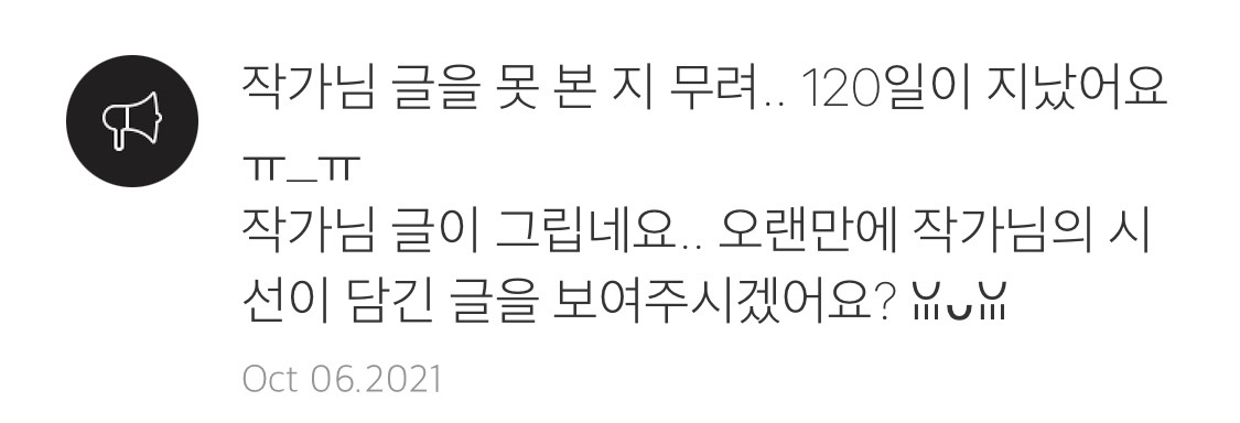 그동안 이곳에 자주 들르지 못해서.. 막 이런 메시지를 받는 와중에