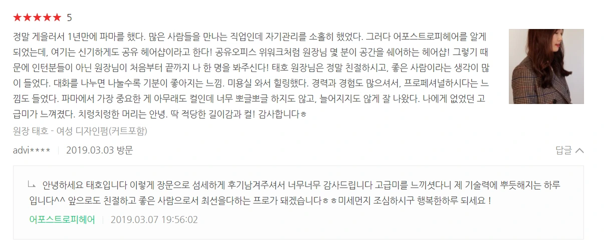 홍대 어포스트로피에서 머리하고 사진 한 장! 태호원장님 감사합니다 ㅎㅎ