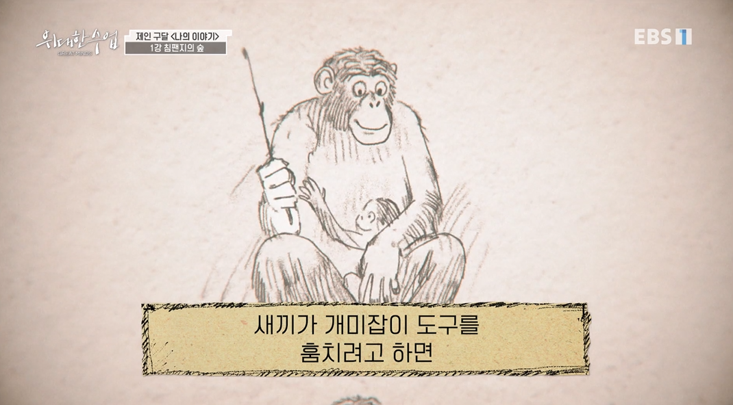 지난 8월 26일, 공영방송 EBS에서 위대한 수업 시즌2가 시작되었습니다. 그 첫 번째 강사로 <행동학자>, <환경 운동가> 이신 Jane Goodall (London, 1934~)이었죠. 그녀가 01강부터 04강까지 이르는 수업 동안, 수강자인 우리에게 해주고 싶었던 이야기는 무엇이었는지 기억하시나요? 어렴풋이 기억하실 수도 있지만, 워낙에 짧게 편집하여 방송하다 보니 쉽게 정리하기 힘든 것도 사실입니다. 그래서 보다 쉽게 이해할 수 있도록, 그녀의 이야기가 더 많은 사람들에게 전해지길 바라는 마음을 담아 쉽게 풀이하겠습니다. 감사합니다.