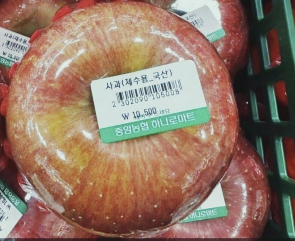 “농약 없이 키운 프리미엄 사과예요. 껍질째 드셔도 됩니다.” 그 옆에는 제수용이라고 적힌 샤인머스캣 한 송이가 4만 8천원에 나란히 놓여 있었다. 포장은 금박 리본, 사과는 명품처럼 쿠션에 눕혀 있었다. '우리 조상님이 샤인머스캣을 아시려나..'
