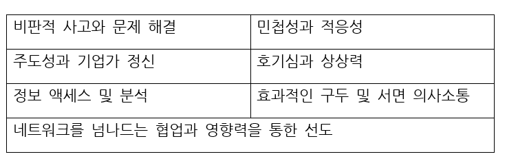와 같이 창의력과, 의사소통능력, 협업능력 등