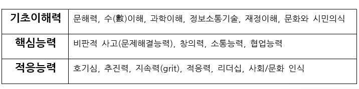 공동체능력, 자기 관리력, 심미 감성력" (교육부, 2015)