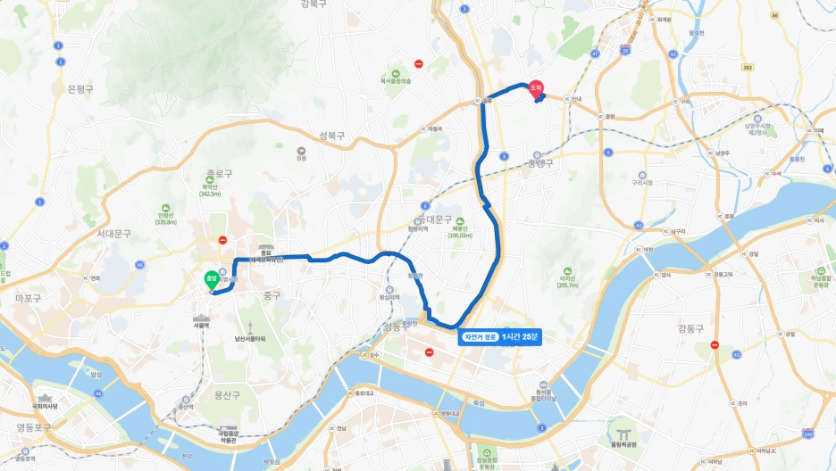 생각보다 지하철로 퇴근할때 걸리는 시간과 크게 차이가 나지는 않는다.
