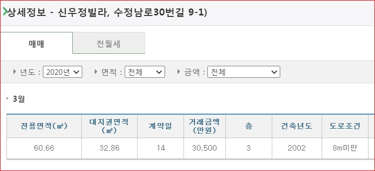 지분 10평 빌라는 2020년 3월에 3억500만원에 거래 되었습니다.