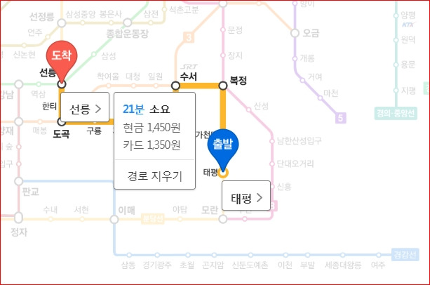 특히 분당선을 이용해서 강남으로 접근하는 시간을 보면,