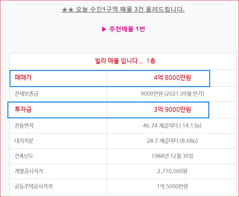 6월에 나온 매물은 8.6평 지분 빌라가 3억9천만원입니다.