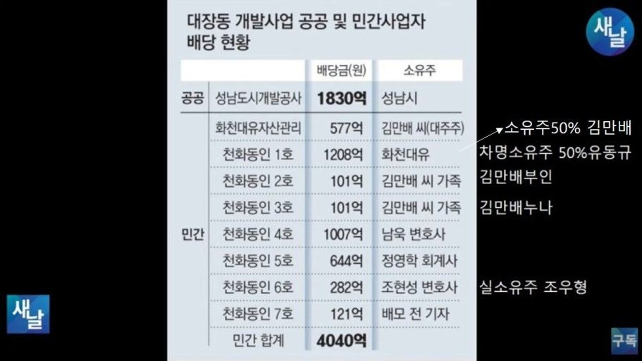 7. ‘천하동인’이라는 이상한 이름의 자회사를 11개나 만든 이유는 참여한 고문들과 뒤를 봐주는 정치, 사법 권력자들에게 수익을 배분하기 위한 도구였다. 곽상도 아들 퇴직금 50억, 박영수 딸의 50억등이 대장동 사업을 돌봐준 이들에게 주는 댓가성 검은 돈들이었다.