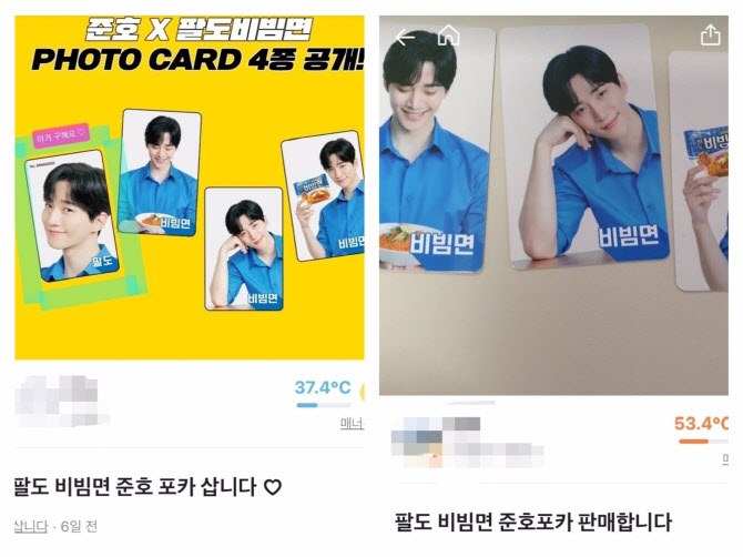 한 중고 거래 플랫폼에서는 ‘비빔면’이 아닌 ‘팔도’ 포토 카드를 구한다고 강조한 게시글을 다수 확인할 수 있었는데요. 희망 구매가는 2만원대로 번들 상품이 약 4천원 내외임을 생각해보면 매우 높은 가격임을 알 수 있습니다.