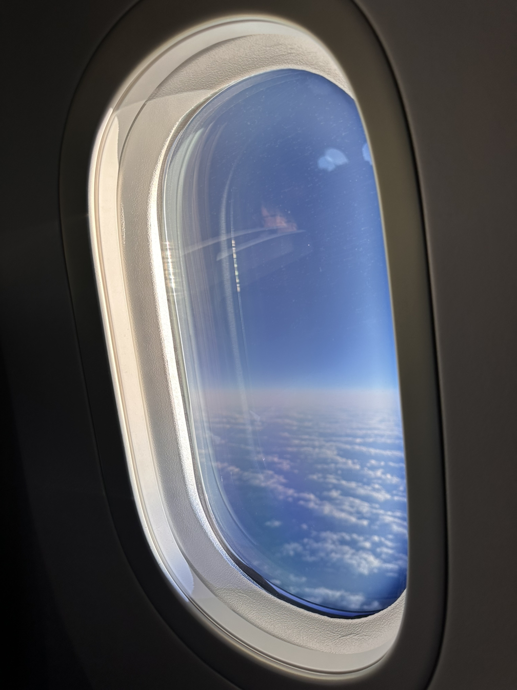 내가 탑승한 인천-뉴욕 노선은 꿈의 항공기라고 불리는 보잉 787-9가 운항 중이었다. 신형 비행기라고 하던데 내부가 정말 깨끗하고 쾌적했다. 14시간의 비행시간 중 10시간 정도는 푹 자면서 갔는데, 그 이유 중 하나가 신형 기체의 줄어든 소음 덕분이라 생각한다. 평상 시엔 비행기 소음 때문에 귀마개를 지참하는 편인데, 이번 여행에선 챙기지 못했음에도 숙면에 아무 문제가 없었다. 내부 온도도 딱 적당해서 담요를 새벽에만 잠깐 덮고 그 외에는 긴팔에 긴바지 차림으로도 충분히 쾌적한 상태로 잠들 수 있었다.