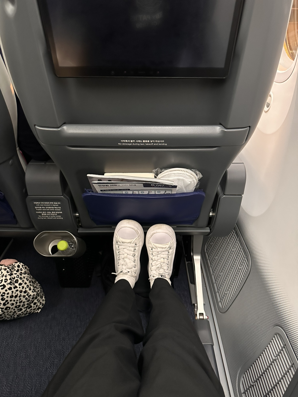 자리에 앉자마자 느껴지는 압도적인 여유로움. 내 체구가 평균적인 대한민국 여성 수준인데, 좌우로 여유로운 공간이 있었고 다리를 쭉 뻗어도 앞에 닿지 않는 넓은 공간이 정말 내내 감탄사를 내뱉게 했다. 글에 다 올리지 못했지만, 신나서 동영상도 꽤 찍었다. (아마 이건 나중에 인스타그램에 올릴 것 같다.)
