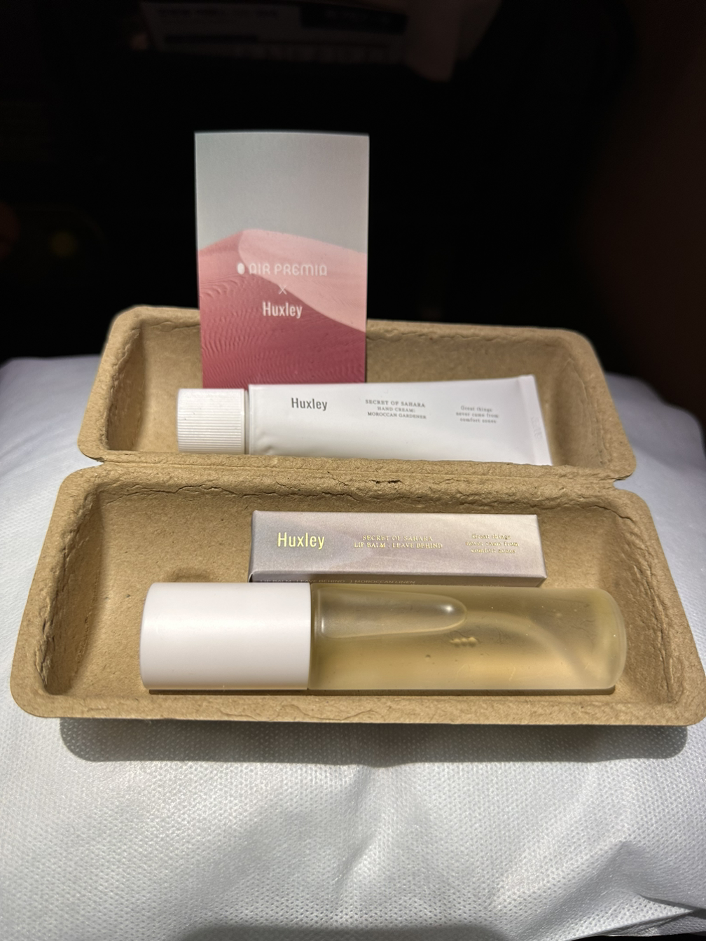 프리미엄 이코노미 승객에게 제공되는 어매니티 키트는 패키지부터 친환경이라 마음에 쏙 들었다. 장거리 비행뿐만 아니라, 평상시에도 수시로 필요한 오일 미스트, 핸드크림, 립밤이 들어있어서 여행이 끝난 지금도 건조한 사무실에서 유용하게 사용 중이다.
