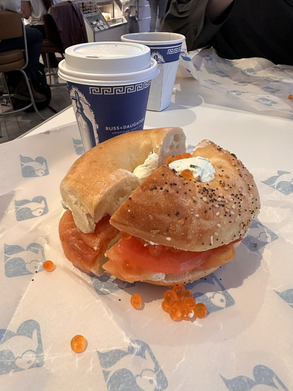 첫 식사는 연어 베이글 샌드위치가 유명한 Russ & Daughters였다. 뉴욕의 아침은 베이글과 함께 시작하고 싶었다. '뉴욕 베이글' 이름도 입에 촥 감기지 않은가.