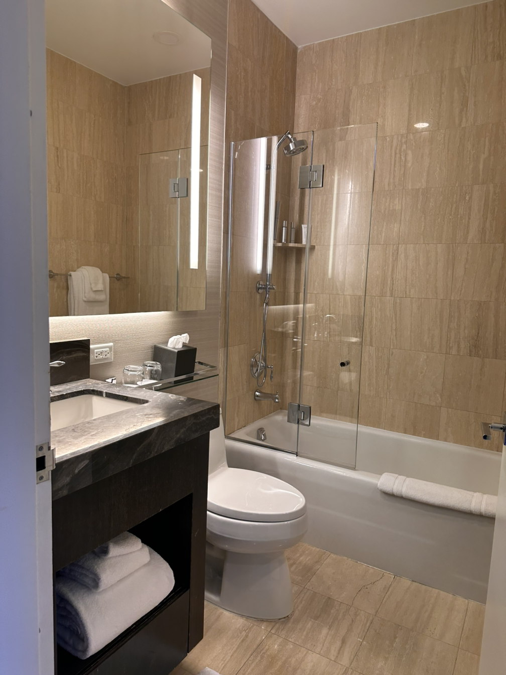 그렇게 거실과 침실에서 보이는 센트럴 파크를 감상하고 수없이 사진과 동영상을 찍은 다음에야 정신을 차리고 다른 시설을 구경했다. 트럼프 인터내셔널 호텔 & 타워 뉴욕은 5성급의 좋은 호텔이긴 하지만 오래된 호텔이기도 해서 시설이 최신식은 아니었다. 샤워룸도 오래된 건물 특유의 느낌이 났고, 환풍구도 예스러웠다.