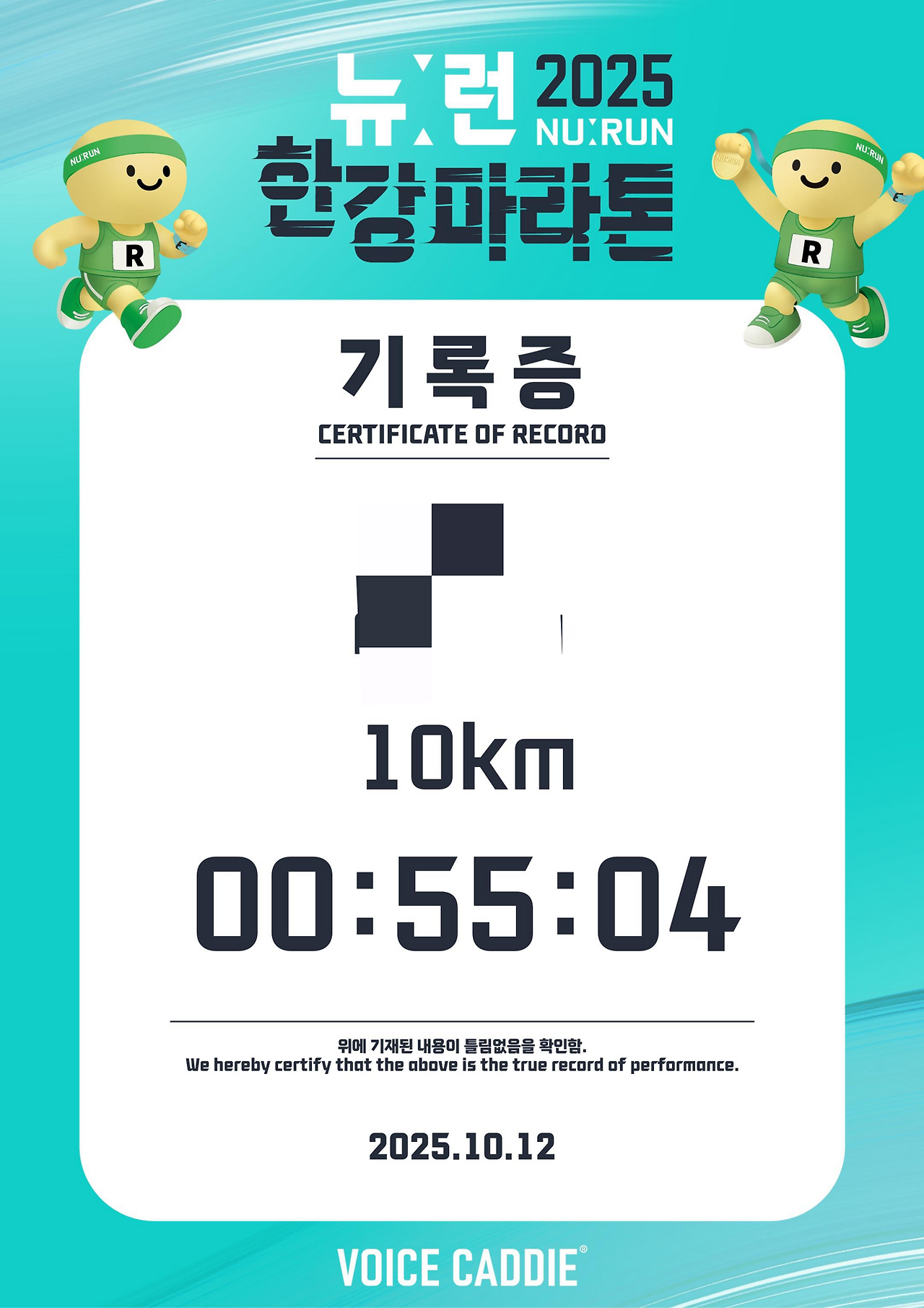 올 해의 기록 : 10km 55:04 신기록