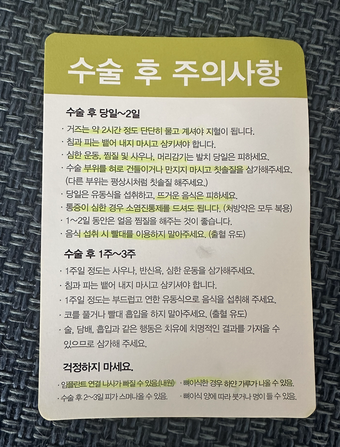 최대한 피하고 싶었지만 결국 임플란트를 하게 되었습니다. 이번엔 어금니 하나뿐이었지만 점차 바꾸게 되겠죠. 치아보험 견적을 받아봐야 하나 고민 중입니다.
