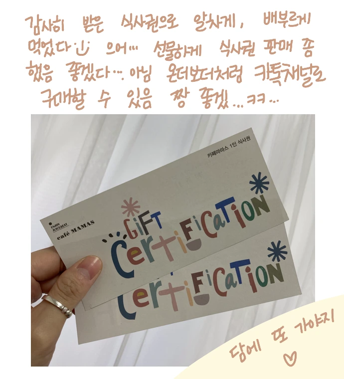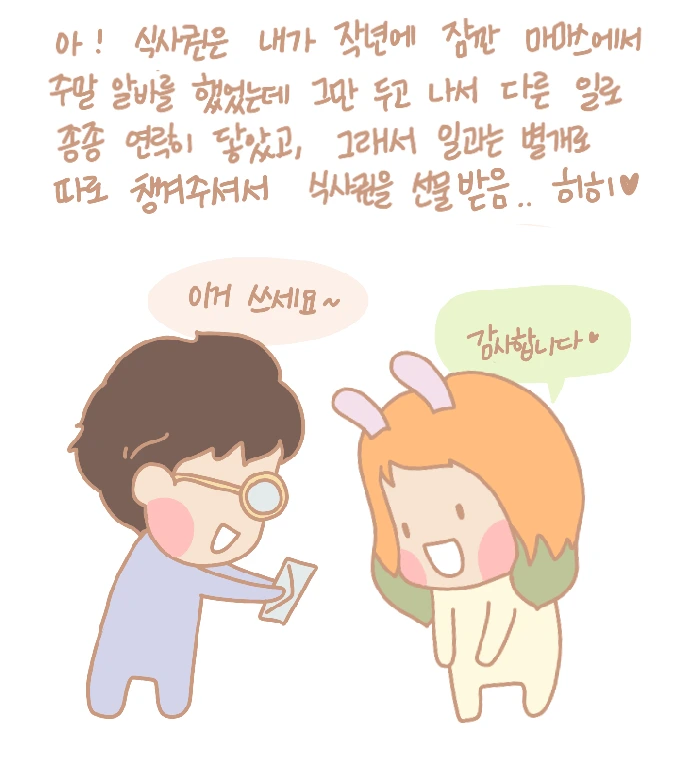 그래도 그 때의 인연으로 마마스 사람들과 아직 연락이 가끔씩이라도 닿고, 제가 일했을 때 점장님-지금은 그만두신-과 따로 밥약속도 잡고 그렇게 지내요. 사람 인연은 정말 알 수가 없는 것 같아요 ㅎㅎ