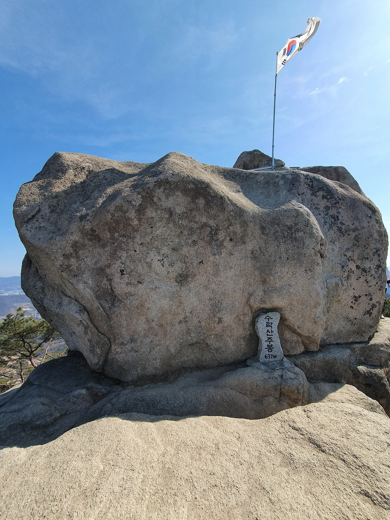 정상석. 흔들리는 태극기가 등산객을 반긴다. 올림픽 시상대에서 바라보는 태극기가 이런 기분일까? (과장이 심하다)