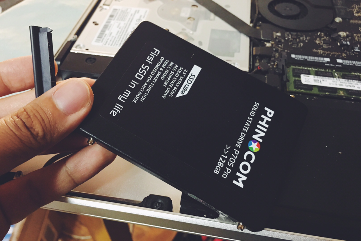 철판을 대충 가공해 만든 듯한 케이싱과, 저렴한 느낌을 더해주는 디자인에 유광으로 마감된 커다란 스티커까지. 고급형 라인인 삼성의 840EVO와 비교해보면 정말 말 그대로 장난감 같다. 이게 모형인가 진짜인가 의심될 정도로 말이다. 어차피 무상 서비스를 받을 일이 없을 거기는 하지만 괜히 3만 원 날려먹으면 기분이 굉장히 별로일 것 같아 내부를 뜯어보지는 않았다. 뜯어보면 성능이 괜히 더 의심스러울 것 같아 안 한 것도 있지만 말이다. 저장장치에 외관이 중요한 요인은 아니지만, 역시 딱 그 가격에 그 외관이라는 생각이 들었다. 일단 외장하드 케이스에서 750GB 하드디스크를 분리하고 그 자리에 SSD를 장착한 후 구 맥북에 연결했다. 디스크 유틸리티를 이용해 SSD는 JHFS로 포맷했고, 부팅 디스크로 쓰는 320GB짜리 하드디스크의 OSX파티션은 가능한 한 작게 축소했다. 그 후에 복구모드로 부팅해 OSX 파티션 전체를 이미지로 백업하고 전원을 끈 뒤 하판을 분리해서 HDD와 SSD를 맞바꿨다. 구 맥북에 SSD를 장착한 상태로 복구모드에 다시 돌입, 이제는 외장하드 케이스에 들어간 320GB HDD에서 백업된 이미지를 불러와 복구를 진행했다. 용량은 60GB 정도였고, 복구에는 40분 정도 걸렸던 것 같다.