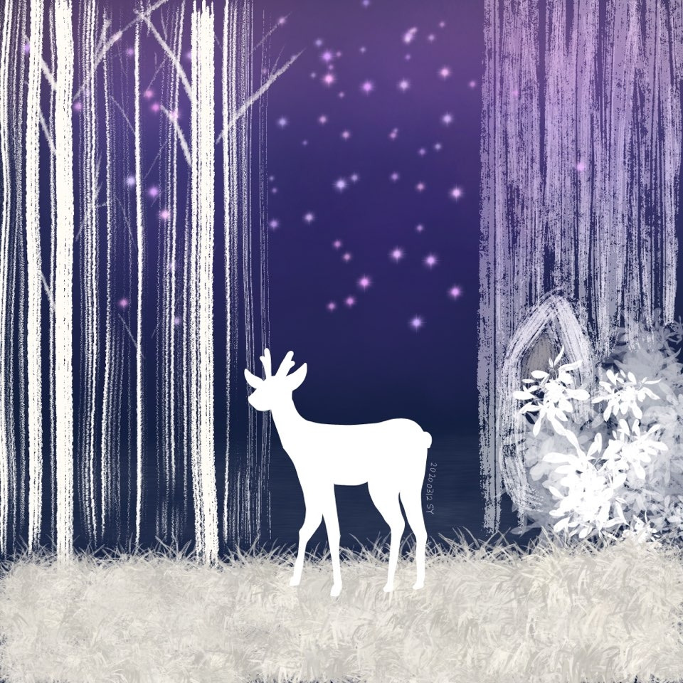 아무도 없는 차가운 땅을 밟으며 흰 사슴은 눈을 감았어요. 온통 하얀 땅과 하얀 나무, 하얀 여우와 자기처럼 하얀 사슴과 친구가 될 수 있을 것이라고 상상하면서 사슴은 달리기 시작했어요. 차갑고 상쾌한 바람이 사슴의 볼을 간질이고, 부드러운 풀들이 사슴의 다리에 손뼉을 치는 것 같았어요. 숲 속의 친구들이 사슴을 부르는 소리가 들리는 것 같아 눈을 뜰 뻔 했지만, 흰 사슴은 눈을 꼭 감고 달렸어요. 열심히 달리는 사슴의 코에 향기로운 꽃냄새가 스쳤어요. 조금 더 달려가자, 사슴의 발바닥에는 폭신한 눈이 밟히기 시작했어요. 사슴은 눈을 뜨고 싶었지만, 청둥오리 대장이 말해줬던 노래가 들리지 않아서 꾹 참았어요. 사슴은 조금 더 걸어가면서 귀를 쫑긋 세웠어요. 멀리서 쪼르르 흐르는 물소리와 함께 처음 듣는 노랫소리가 들려왔어요. 흰 사슴은 크게 숨을 내뱉고, 눈을 떴어요. 그러자 달려온 길은 보이지 않고, 사방이 흰 나무와 흰 바위로 둘러싸여 있었고 처음 보는 커다란 하얀 새가 흰 사슴을 보고 웃으며 노래를 부르고 있었어요. 흰 사슴은 눈의 나라를 처음 보는 순간 알았어요. 흰 사슴이 있어야 할 곳은 여기였어요. 흰 사슴은 더 이상 숨지 않았고, 눈의 나라 저 멀리에서는 아름다운 흰 사슴의 노랫소리가 들려오곤 했습니다.