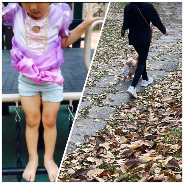 ▲ 네 살과 열 살의 온도차이. 핑크 연보라 드레스만 입던 아이가 십대에 들어서자 검은색 풀착장만 하고 다닌다.