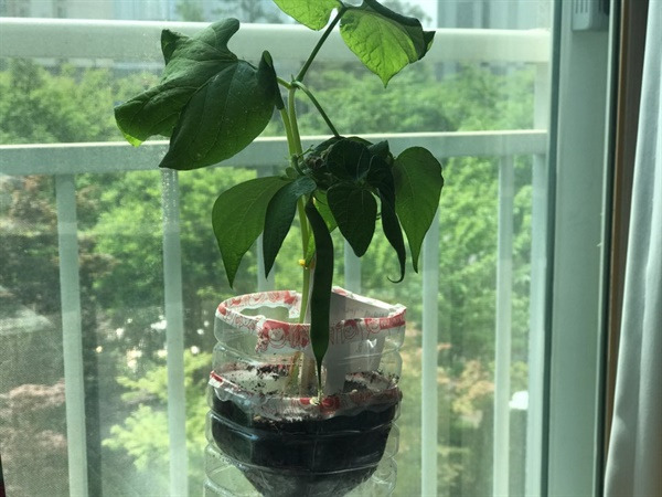 일어나면 가장 먼저 화분에 물을 주고 바람이 잘 통하는 곳에 놓아두었다. 그러길 며칠 후 나는 잎사귀 뒤에 길쭉이 맺혀있는 뭔가를 발견했다. 이럴 수가! 강낭콩 열매였다. 그 순간의 감격이란. 온 가족들을 불러 호들갑을 떨었다.