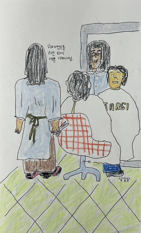 미용실에 간다. 머리 커트는 오늘의 중요한 해피 모먼트. 미용사와 스몰토크를 하는 건 내가 할 수 있는 종류의 것이 아니다. 다행히 이곳 디자이너님은 커트에 열중하는 편이고 꼭 필요한 말씀만 하신다. (다른 손님과는 수다쟁이로 변신하시는구나. 오늘 목격.) 목뼈가 뻑적지근해질 즈음 테라피 마사지를 곁들인 듯한 샴푸가 끝나고 커트가 시작한다. 눈을 감고 머릿속에 그려본다. 청량음료 한 모금 할 것만 같은 일본 미인 탤런트류의 헤어스타일로 변신한 나. 그렇지. 내가 원하는 이미지다. 샥샥샥. 디자이너님의 예술적 커팅이 이어진다. 살짝 감은 눈, 코 끝에 닿는 나의 앞머리. 샥샥샥. 샴푸를 해 준 보조 디자이너님이 스펀지로 톡톡 내 얼굴에 앉은 머리카락을 떨구어낸다. 이제 눈을 뜨면 청량감 듬뿍. 거기에 중성미 한 스푼 톡 끼얹은 내가 있는 거다!