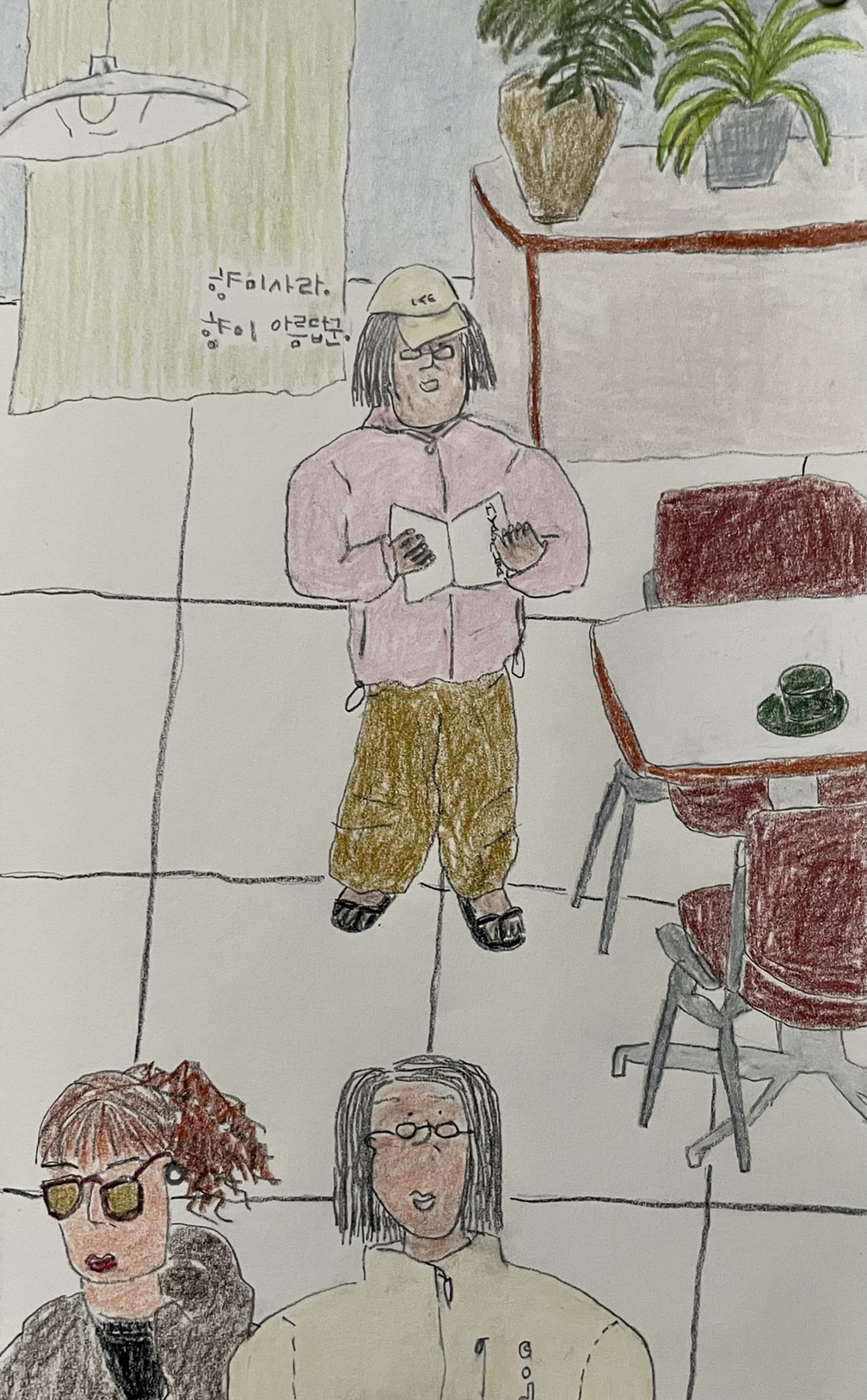 다행히 야외에 의자가 있고 거기에서 마시기로 한다.