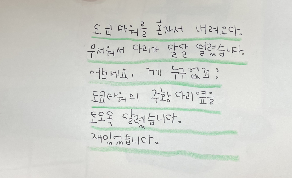 도쿄타워를 혼자서 걸어 내려왔습니다.