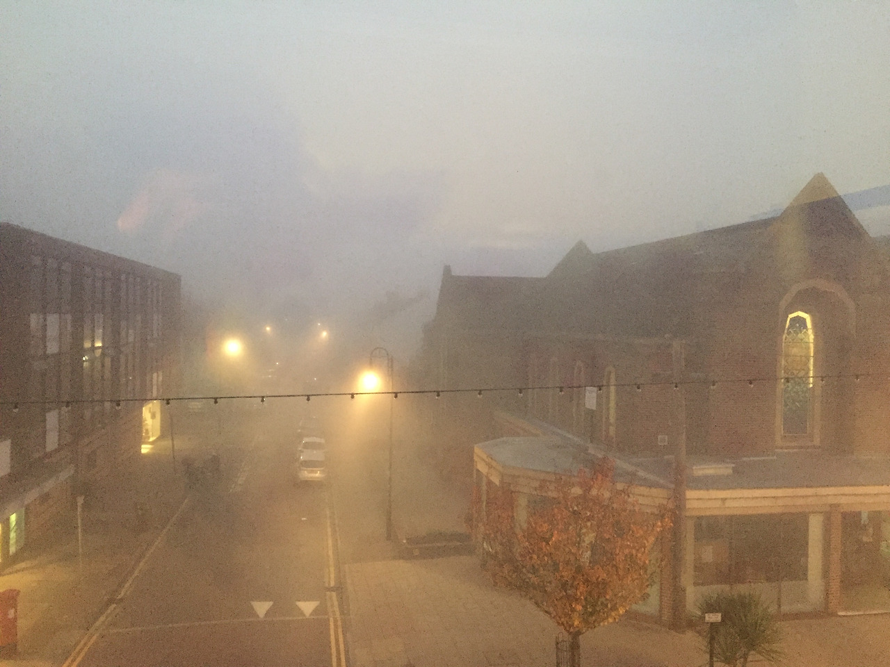 안개가 가득한 첫번째 집 앞 거리