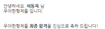 근데 너무나 감사하게도 최종합격을 하게 된 것이다.