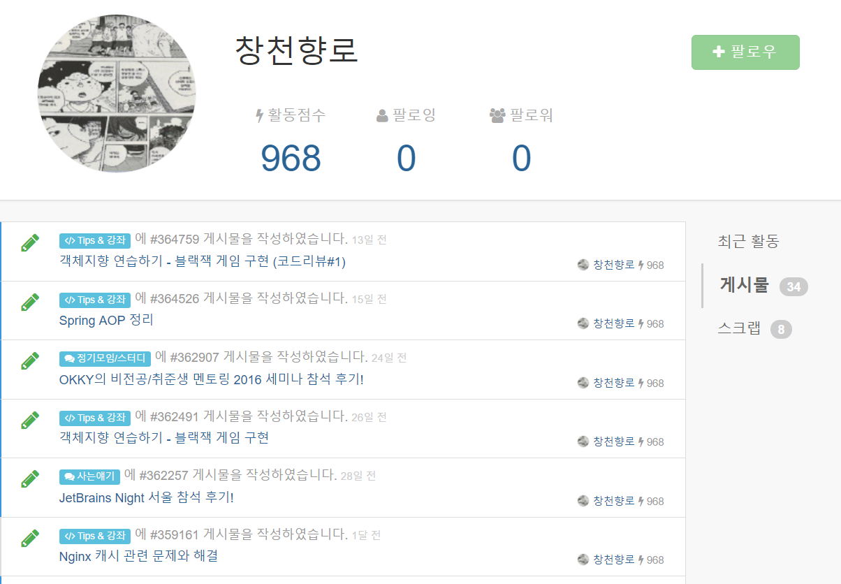 OKKY의 경우 블로그에 포스팅한 내용을 공유하는 창구로 시작하게 되었다.
