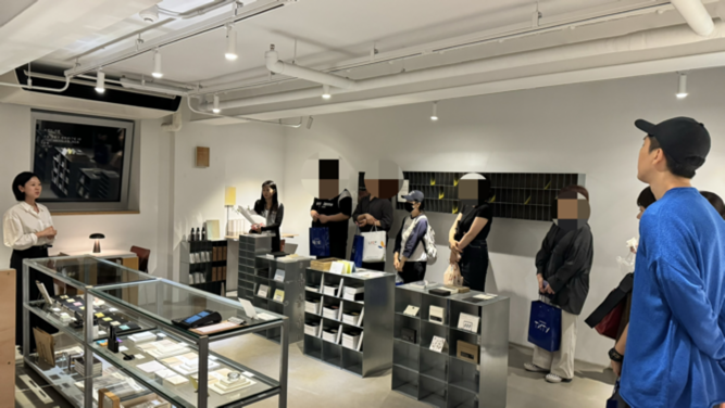 성수동 핫플 LCDC에서 진행했는데, 프로그램의 마지막은 글월 성수점 투어였습니다. 참가자 분들을 모시고 이미 문을 닫은 가게들을 지나 성수점에 들어간 것은 무언가 신비로운 기분에 빠지게도 했습니다. 성수점에 들어가자 글월 디렉터이신 문주희 대표께서 글월에 대한 이야기를 해주셨고 특별 고객이 된 기분으로 가게 구석구석을 살펴볼 수 있었습니다.