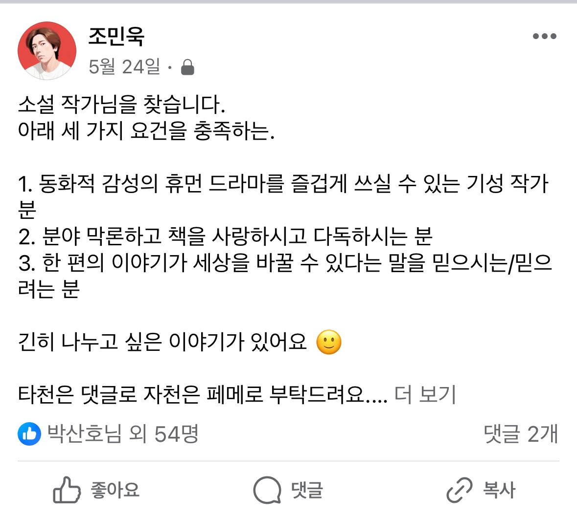 A프로젝트는 2024 독서문화실태조사가 발표된 다음 날, 후배와 점심을 먹으면서 대화하다 발상이 시작된 프로젝트입니다. 매년 조사 지표를 보면 출판업 종사자로서 쉽지 않다 느끼게 되면서, 그 이전에 독서를 사랑하는 사람으로서 미래가 암울하다고 느끼게 됩니다. 더군다나 저는 아이를 키우는 사람이다 보니, 지금의 추이로 봤을 때 사람들이 훨씬 책을 덜 읽을 미래에 우리 아이들이 잘 살아갈 수 있을까 하는 생각도 들고요. 텍스티는 사람들이, 책과 함께, 이야기와 함께 살아가길 바라는 브랜드이고 거기에 조금이나마 기여하고자 재미있는 소설을 내고 잘 알린다는 사명감을 가지고 있는데 그것만으로 충분할 리 없다고 생각했습니다. 텍스티보다 훨씬 잘하고 오랜 시간 애써왔던 출판사들이 있음에도 독서 지표가 나날이 안 좋아지는데 우리가 뭘 할 수 있을까 하는 생각이 들었던 것입니다. 그런데 한편으로는 이런 생각도 들었습니다. 책 한 권이 세상을 바꾼다는 말이 수사처럼 존재하는데 정말 그런 일이 일어날 수는 없는 걸까? 책 한 권이 세상을 바꿀 수 있다면, 책 한 권을 만드는 일은 텍스티도 하고 있는 일이니까 새로운 생각을 한다면 우리가 해낼 수도 있는 일 아닐까? 이런 질문으로부터 시작해 제가 어릴 적 보았던 영화들에 대한 기억 그리고 독서가들의 선한 욕망을 기반으로 한 캠페인, 캠페인과 연결되는 이야기 등등 두서없는 이야기를 나누다 보니, ‘이거 (좋은 쪽으로) 미친 기획이 될 수 있겠는데?’ 하는 설렘과 흥분을 품게 되었고 며칠 후 아래와 같이 페이스북에 글을 올려 여러 작가님과 소통을 하게 되었습니다.