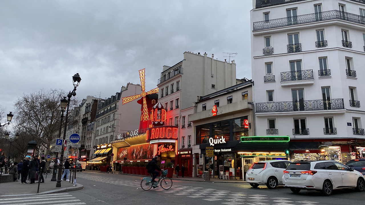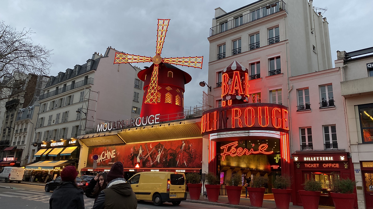 붉은 네온사인이 화려해 올려다보니 물랑루즈가 나오고...