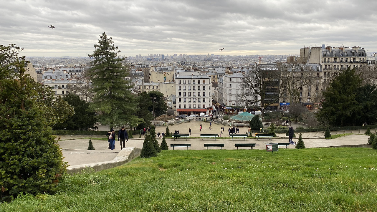 몽마르트르 언덕 위로 바람이 정말 심했고 옷 하나를 더 껴입고 나왔음에도 추웠다. 칼바람이 몸 구석구석을 파고들었고 뭉친 바람에는 몸을 떠밀릴 정도였다. 너무 춥다는 생각에 기온을 봤는데 영상 10도가 넘었다. 같은 옷차림으로 서울에서는 영하의 날씨도 그럭저럭 견뎠는데... 바람의 위력을 새삼 깨달았다. 불면 불수록 나그네가 옷을 여기는 바람에 내기에서 지는 바람 아저씨도 생각났고.