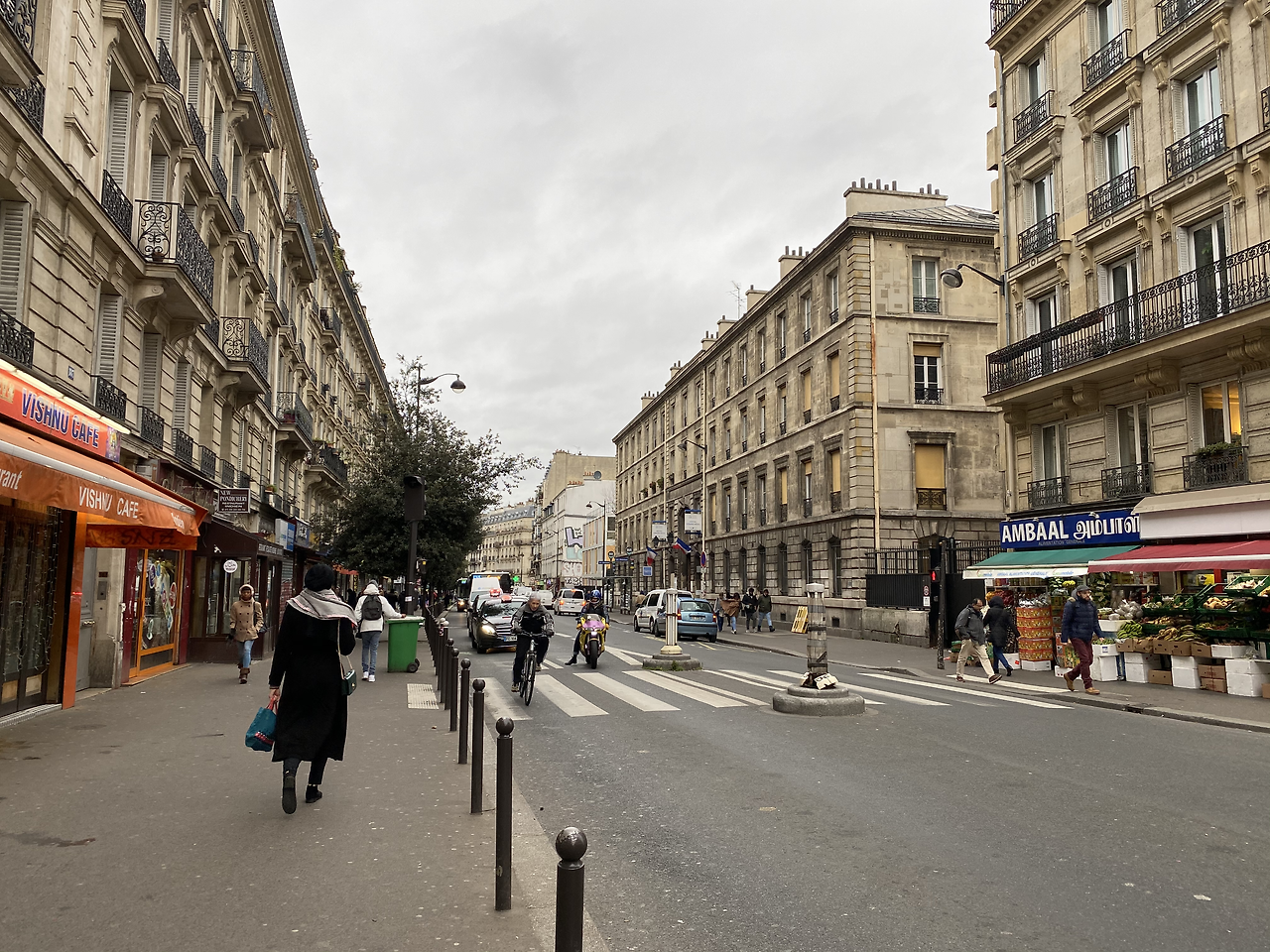 홀로 파리 북역에서 숙소까지 올 때는 날씨도 꾸물하고 인적이 드문 느낌이라 조금은 각박한 느낌을 가졌는데 그의 뒤를 따르자 전혀 다른 느낌의 파리가 펼쳐졌다. 살아 있는 파리, 따스한 파리가 다가왔다. 각종 상점, 식당, 마트, 빵집 등이 즐비한 거리를 걸었다.