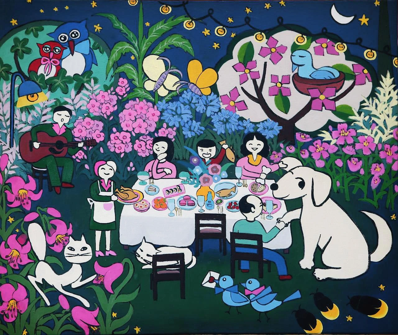 다음 사진은 아내와 은달이가 정원에서 함께 있는 모습이었고 나는 우리 가족을 소개했습니다. 아내가 그린 그림을 보여 주며 개인전을 3회 개최한 화가이고 지역 문화계에서 활발히 활동하고 있다고 말했습니다. 그녀의 그림은 정원이 소재이고 그녀의 예술적 영감은 정원으로부터 얻고 있다고 얘기했습니다.
