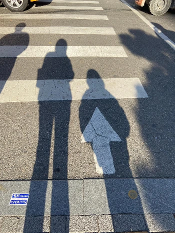 횡단보도를 건너는데 "엄마 내 배에 화살표가 있어", "내 뱃속으로 가야 하나 봐", "하하하하"