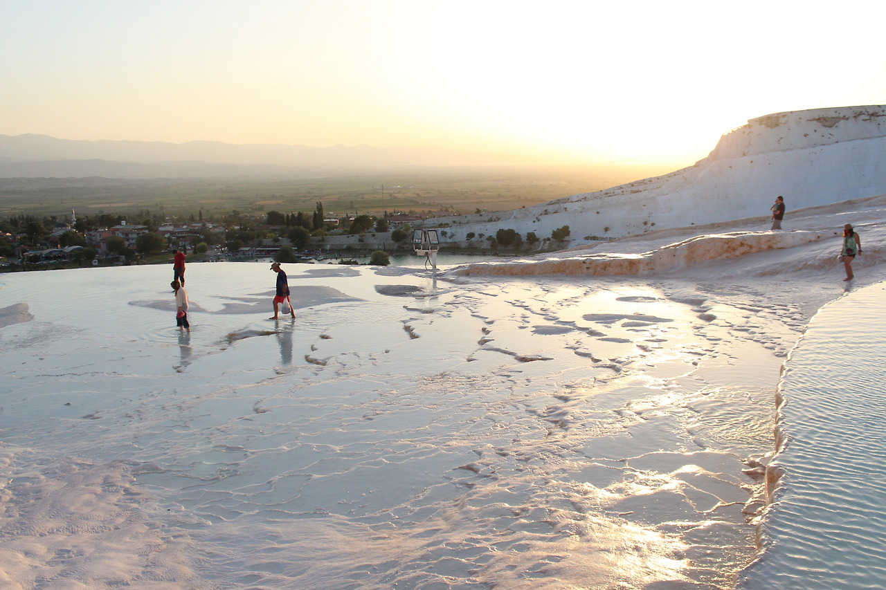 객실에 체크인하고 나서 잠시 뒤 욕실에서 쿵, 하는 소리가 들렸다. 엄마가 욕조에서 미끄러져서 발바닥을 조금 다쳤다. 몸이 불편한 할아버지 할머니와 살았던 때 힘이 없어 넘어져 다치는 것에 약간 트라우마가 생겼던지라, 가슴이 철렁했다. 더군다나 잠시 뒤 파묵칼레의 석회암을 맨발로 걸어다녀야 하는데. 또 무슨 용기였는지 나는 두번째 손짓발짓으로 호텔 직원에게 엄마의 부상을 알리고 호텔 차를 얻어타서 파묵칼레로 이동했다. 엄마는 다행히도 씩씩하게 파묵칼레를 걸어주었다.