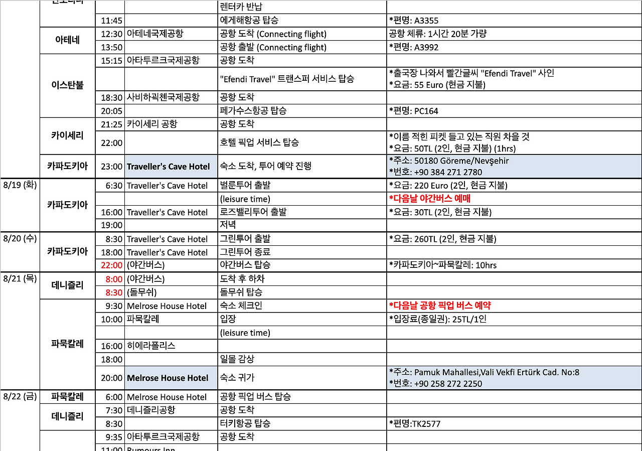 나는 많은 계획을 세웠다. 이 때는 아직 여행력(?)이 무르익지 않았을 때라 참 무리한 욕심을 많이도 부렸다 싶다. 나는 이스탄불에서의 문화 탐방도 특별한 자연 경관도 포기할 수 없었고, 여기에 지중해를 본격적으로 누려보고 싶은 마음에 그리스 산토리니까지 일정에 추가했다. 한국을 왕복하는 비행 일정말고도 터키와 그리스를 오가는 국제선, 이스탄불에서 (인천공항과 김포공항 같은) 공항 사이의 이동, 카파도키아와 파묵칼레 사이의 10시간에 이르는 야간 버스 이동이 필요했다.