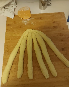 머리땋기 이야기는 이 할라 빵을 만들면서 생각났는데 유대인의 전통빵으로 예쁘게 땋아진 올록볼록한 모습의 빵을 한 번쯤 본 사람들이 많을 것 같다. 빵을 만들다 보면 브리오슈와 비슷하다고 할 수도 있겠지만, 육류와 유제품을 같이 먹지 않는 코셔에 따라 유제품(버터나 우유)이 전혀 들어가지 않고 계란과 오일로 만드는 빵이었다.
