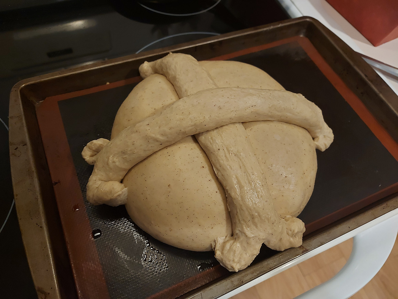 그리고 사진으로는 크기가 어느 정도인지 감이 없었는데 이 빵이 커지고 커지고 커져서 베이킹팬을 꽉 채우고 있었다. 크리스마스나 부활절에 사람들이 모여 먹는 빵이니 당연할 법도 하지만 잘 구워질는지 또 발효가 잘못된 건 아닌지 불안해졌다.