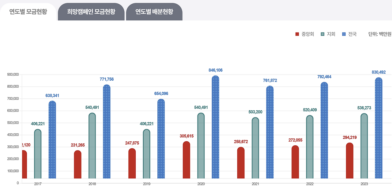 전국적으로 거대 조직으로 움직이고 있음을 모르는바 아니고 거기에 따른 큰 비용이 드는 것 또한 모르는 바 아니다. 하지만 그 움직임조차 투명하고 보여줘야 한다. 왜? 국민과 기업들이 좋은 일에 쓰라고 십시일반 모금해 준 피 같은 돈이기에 그렇다.