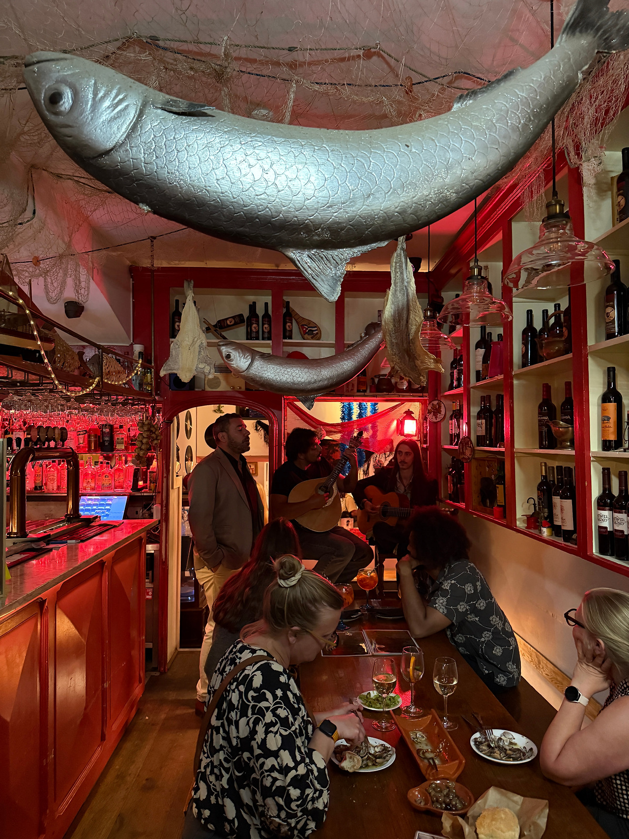 파두. 포르투갈의 영혼이라 불리는 음악. 고통, 그리움, 회한, 그리고 사랑의 감정을 담은 그 선율은 언어를 초월했다. 작은 식당은 마치 음악의 성소 같았다. 입구 쪽에 10여 석, 안쪽으로 30여 석 남짓. 가수와 두 명의 기타 연주자가 공간을 오가며 노래를 들려주었다. 라이브로 울려 퍼지는 파두는 전율 그 자체였다. 무대라고 하기엔 기타 연주자를 위한 의자 2개가 전부다. 하지만 파두 가수의 노랫소리는 작은 공간이기에 더욱 빛을 발하는 듯했다. 오직 음악과 사람들이 있을 뿐이었다.