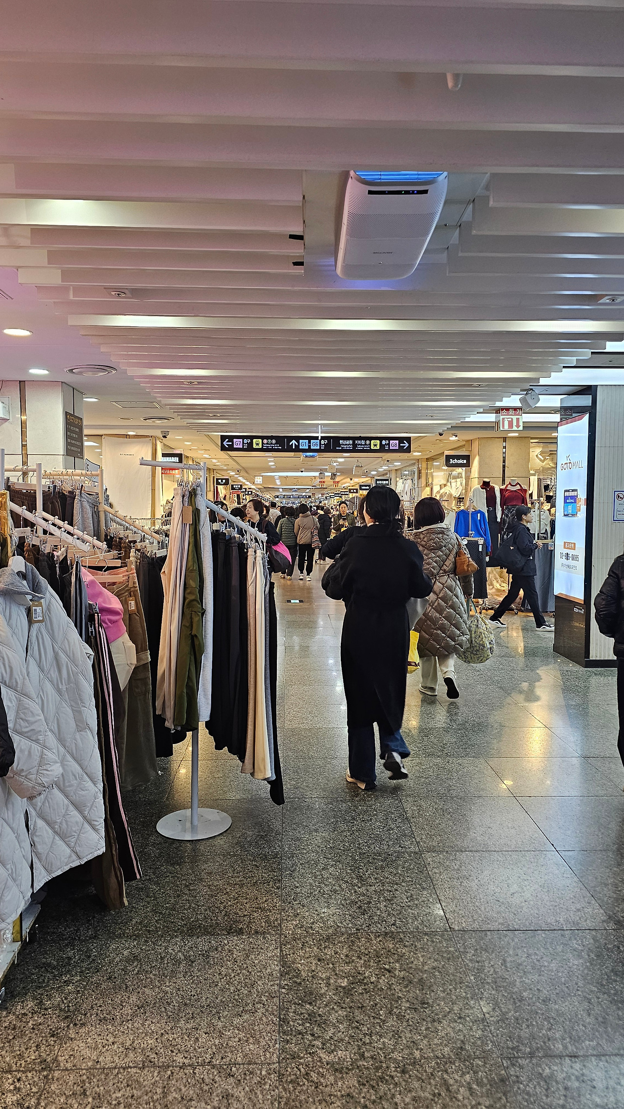 500미터가 넘는 상가 통로를 지나갑니다. 단일 통로가 아니고 통로가 양쪽으로 2개인 대형지하상가인지라 입주해 있는 상점들의 숫자가 어마어마합니다. 그럼에도 비어있는 공간은 하나도 보이지 않습니다. 그만큼 쇼핑공간으로써 기능을 하고 있다는 반증일 겁니다.